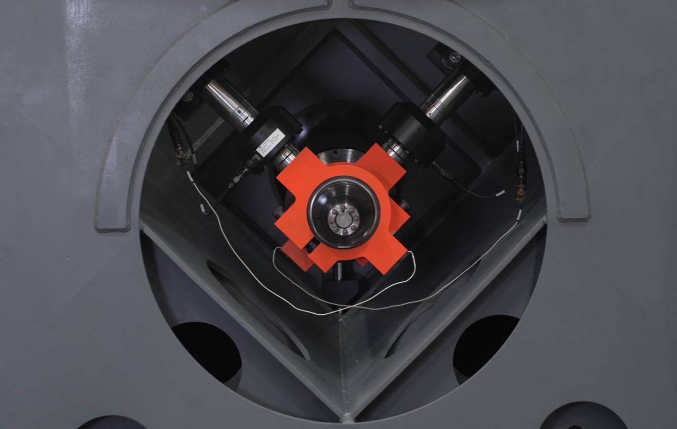 内置对齐导轨可确保大型车轮试件便捷、准确的安装、对中,并夹紧在重型钢制反力框架上。