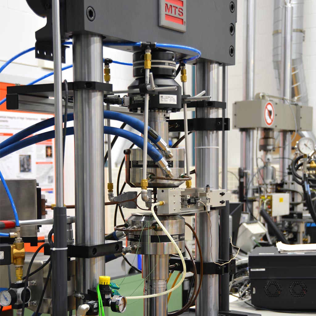 为了进行测试,Empa实验室使用MTS的两个伺服液压测试系统,能够运行复杂的TMF测试。这些系统的功能、附件以及数字控制器和软件架构适应了 Empa TMF 测试方法的两个独特方面。